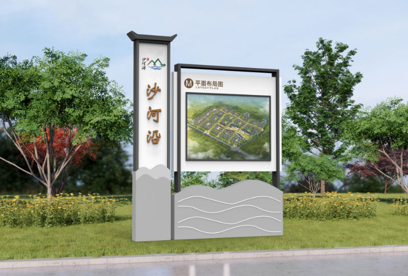 造型,不同的造型会给用户不同的视觉感受,这是导视标识牌很大的一个要点,这个造型在个性化服务的场景中对用户的吸引力可以说比色彩更加有效,比如在一些特色风景区,可以看到造型独特的地方色彩浓厚的形象标识,其实这种文化特征内涵就是需要一个传递的载体,导视标识牌刚好就是这个载体