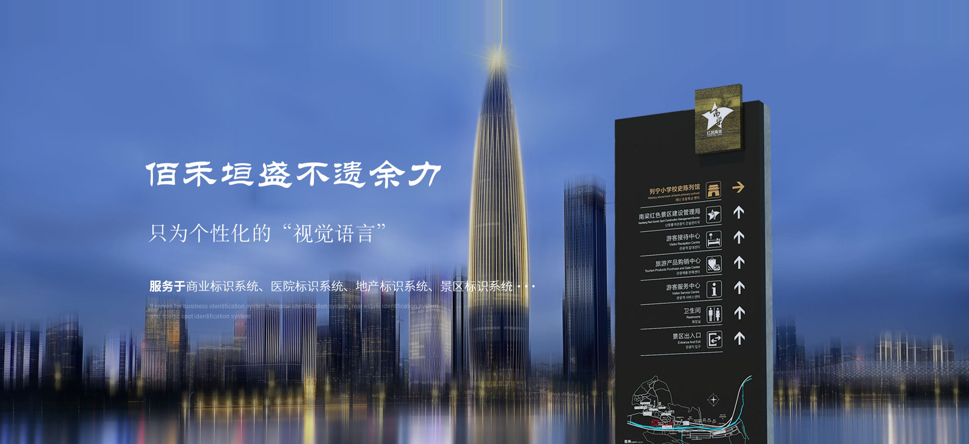 公司主导产品有:地产标识系统、环境标识系统、景区标识系统、社会主义核心价值观标识系统、党建基础文化建设标识系统、医院标识系统,太阳能路灯、景观灯,广告灯箱、发光字,各种护栏等产品。